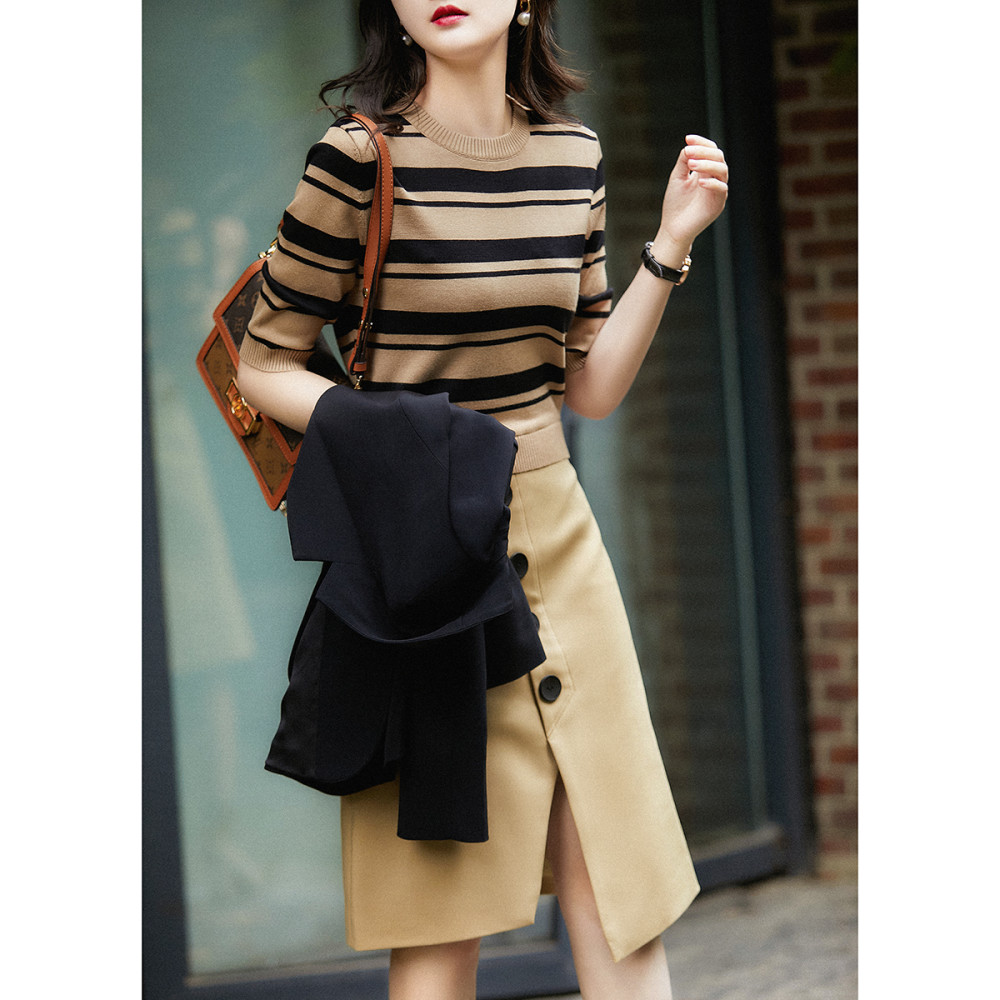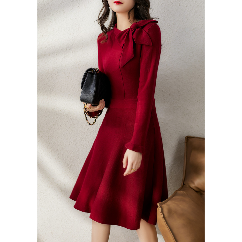 一件修身、洋气的针织连衣裙,给人一种慵懒的感觉。领口侧面的蝴蝶结设计也挺可爱的。高腰的设计让整个腰线看起来优雅、自信、迷人,波浪形的衣服摆也很优雅。配一双短靴,真的很有女人味。35岁的女人穿成这样也很高级。